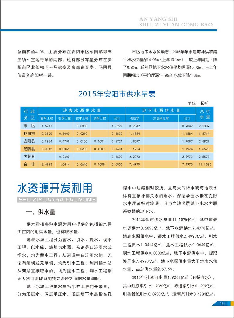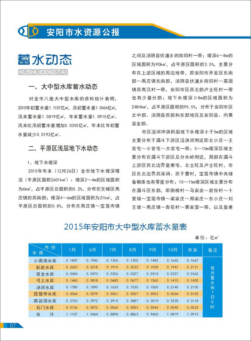 2015年安阳市水资源公报